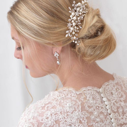 Bridal Headpiece and Comb - Pearl, Crystal, Gold, Floral