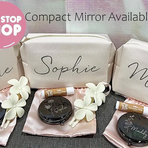 Personalized Compact Mirror – Custom Name Gift, Bridesmaid, Bridal Shower & Wedding Gifts