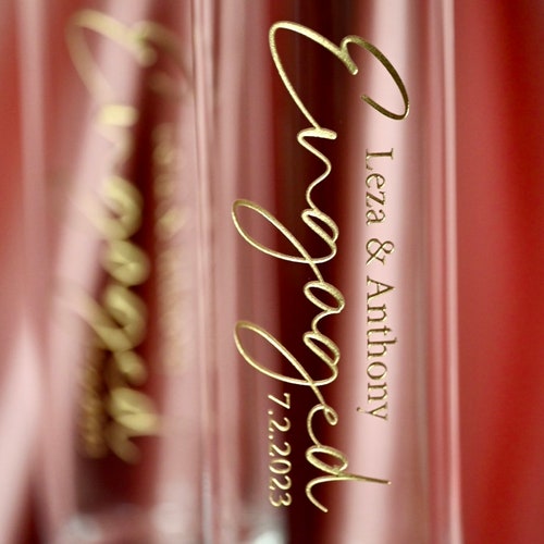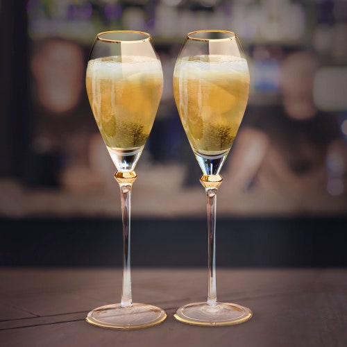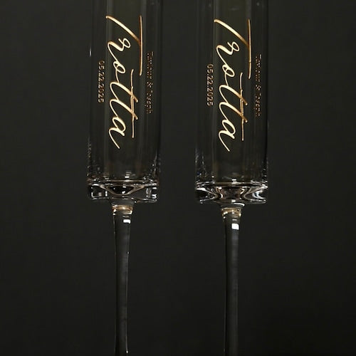 Personalized Gold-Rimmed Tulip Champagne Flutes with Custom Box