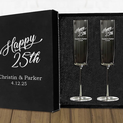 Modern Wedding Toasting Flutes with Personalized Wooden Gift Box