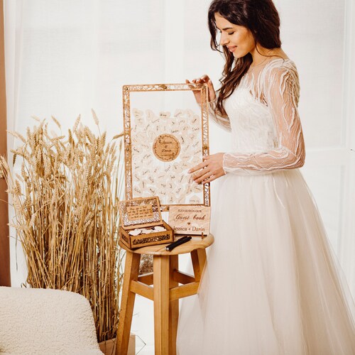 Personalized Wooden Wedding Guest Book with Advice Dividers