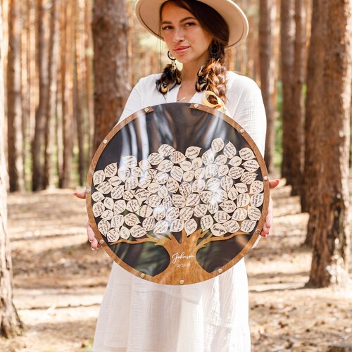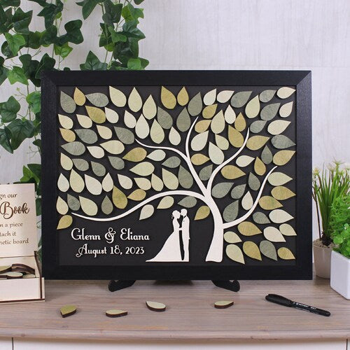 Personalized Family Tree Wedding Guest Book Alternative – Rustic Wooden Keepsake