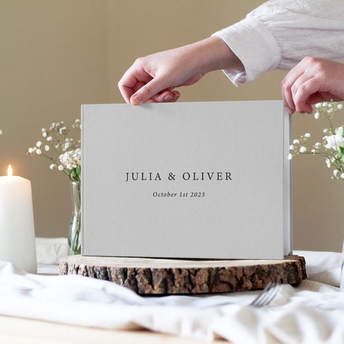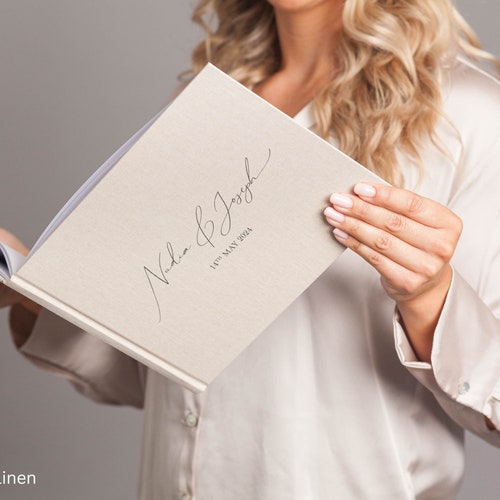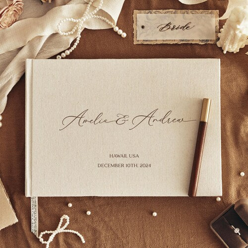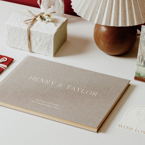 Personalized Linen Wedding Guestbook with Elegant Design