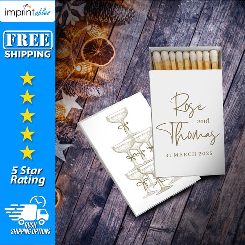 Personalized Wedding Matchboxes – Set of 50 Custom Matchbox Favors