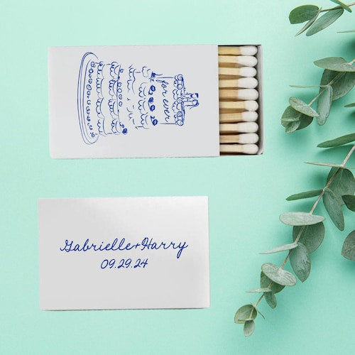 Hand-Drawn Cake Design - Wedding Matchboxes