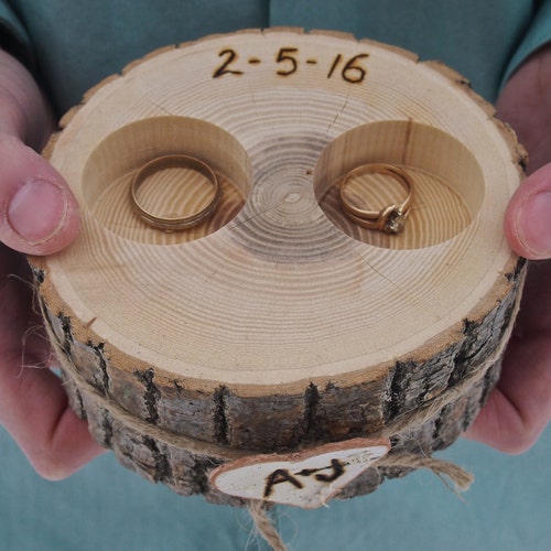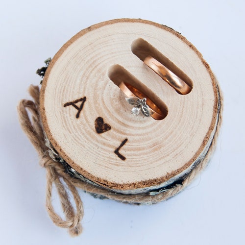 Personalized Wood Slice Ring Bearer Box | Rustic Ring Holder | Wedding Ring Pillow Alternative