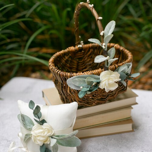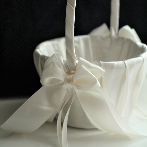 Flower Girl Basket and Ring Bearer Pillow Set – Ivory Wedding Accessories with Lace and Satin