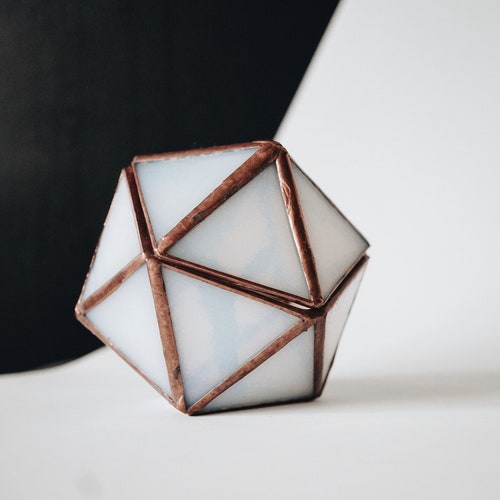 Personalized Hexagon Glass Ring Box with Moss | Gold or Rose Gold