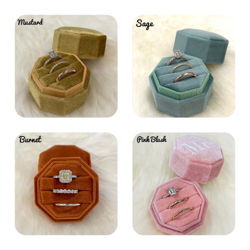 Triple Octagon Velvet Ring Box | Personalized Monogrammed 3-Slot Engagement & Wedding Ring Holder