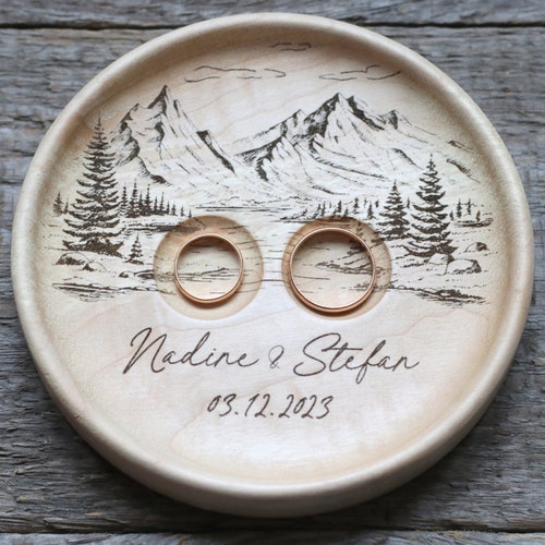 Mountain View Wedding Ring Dish – Personalized Wood Ring Holder