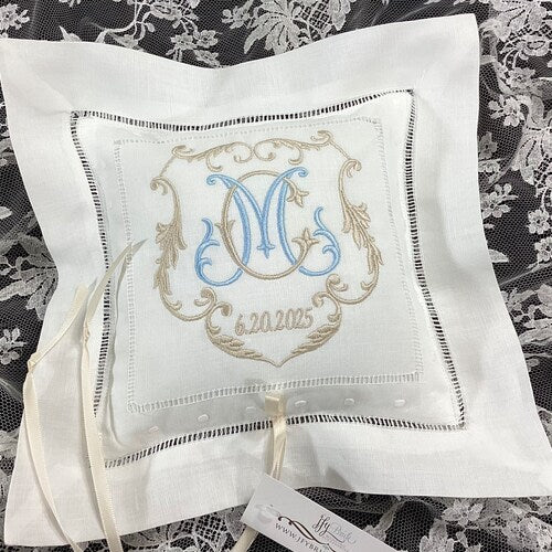 Monogrammed Ring Bearer Pillow with Custom Ribbon