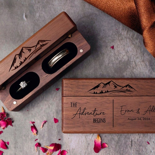 Personalized Wooden Engagement & Wedding Ring Box – Double Slot