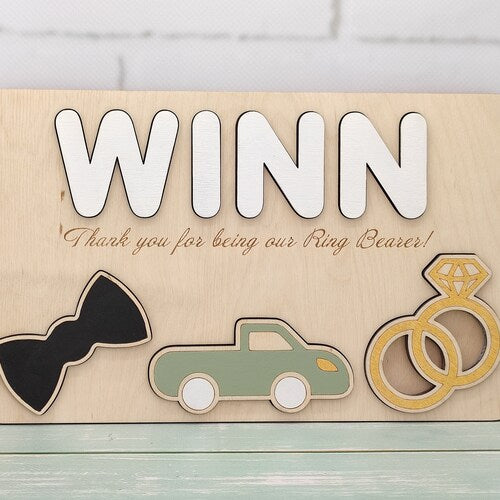 Personalized Ring Bearer Proposal Gift - "Will You Be Our Ring Security?" Wooden Puzzle