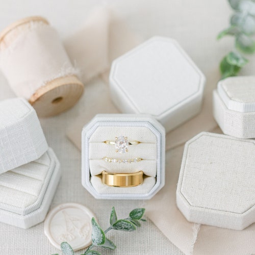 Triple Slot Linen Ring Box | Personalized Wedding & Engagement Ring Holder