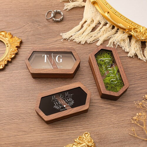 Personalized Ring Bearer Box with Glass Cover | Custom Wedding Ring Box | Rustic Engagement Ring Box