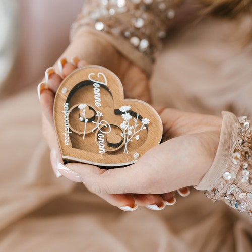 Personalized Wooden Engagement Ring Box | Double Ring Bearer Box with Custom Design