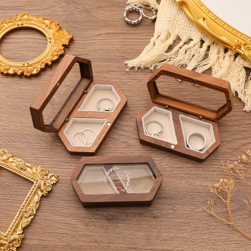 Double Ring Box | Walnut Wood Wedding Ring Holder | Ring Bearer Box