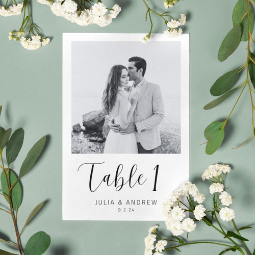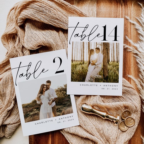 Modern Photo Wedding Table Numbers – Editable Digital Template