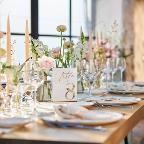 Gold Wedding Table Numbers – Elegant Gold Foil Table Numbers on Ivory or White Cardstock
