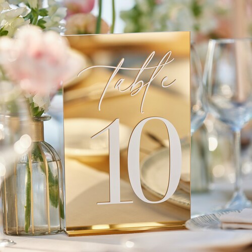 Mirror Gold Acrylic Wedding Table Numbers – Customizable Laser Cut