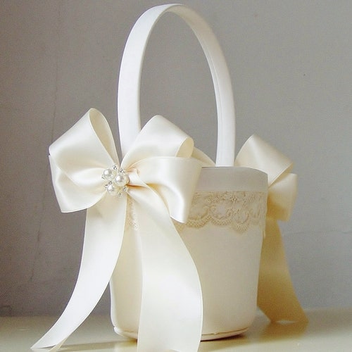 Ivory Flower Girl Basket & Ring Bearer Pillow Set