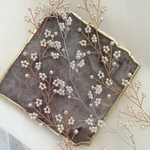 Delicate Crystal Bridal Hair Vine with Babys Breath – Vintage Silver Hair Piece