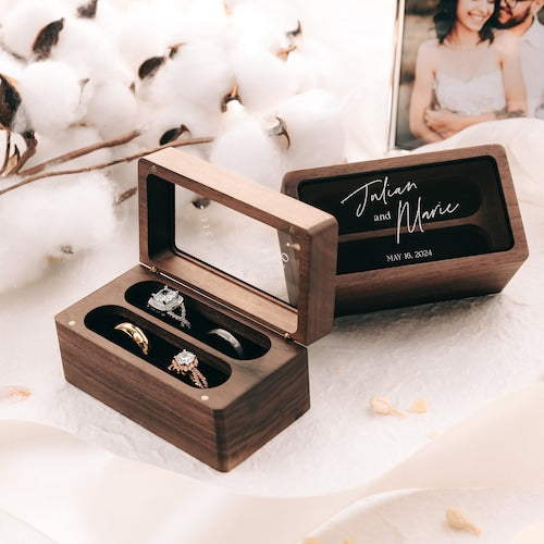 Personalized Wooden Ring Box – Custom Double Ring Box for Weddings & Engagements