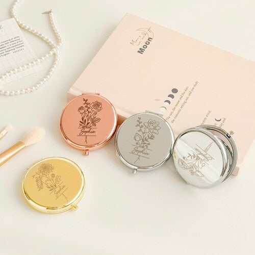 Personalized Compact Mirror – Custom Name Gift, Bridesmaid, Bridal Shower & Wedding Gifts