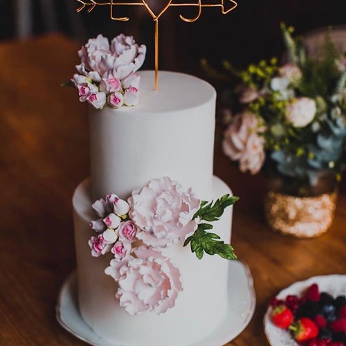 Personalized Arrow & Initials Wedding Cake Topper – Rustic Wire Design