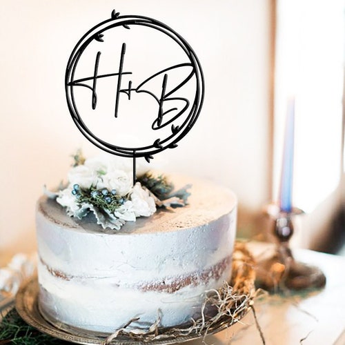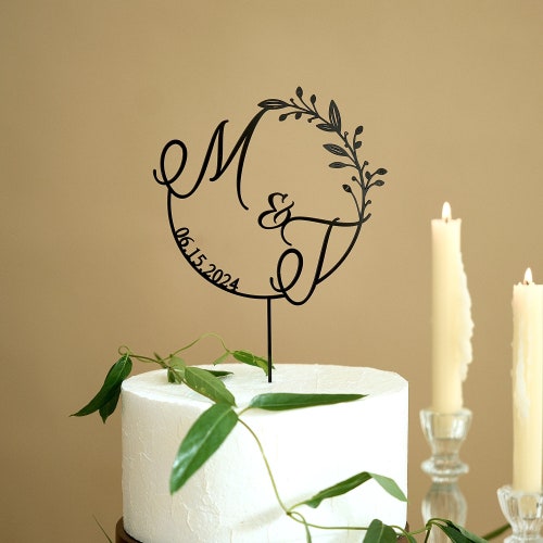 Personalized Wedding Initials Monogram Cake Topper – Rustic Wreath Design