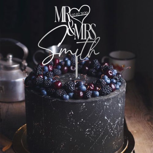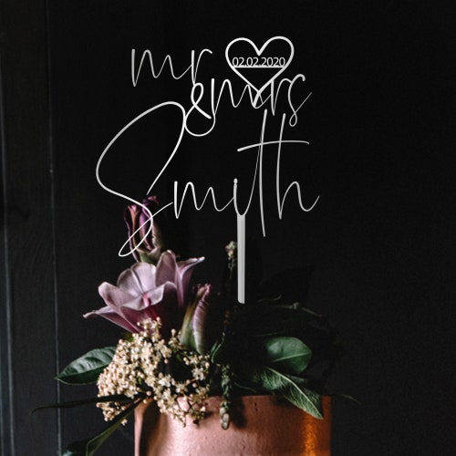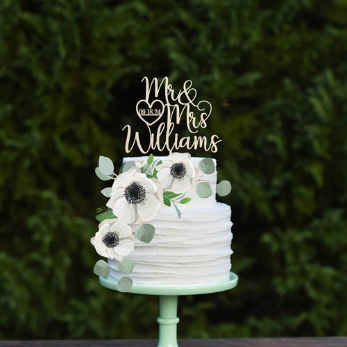 Personalized Wooden Wedding Cake Topper – Mr & Mrs with Last Name and Wedding Date