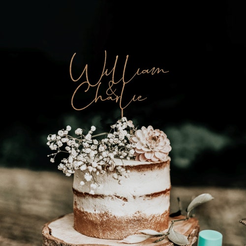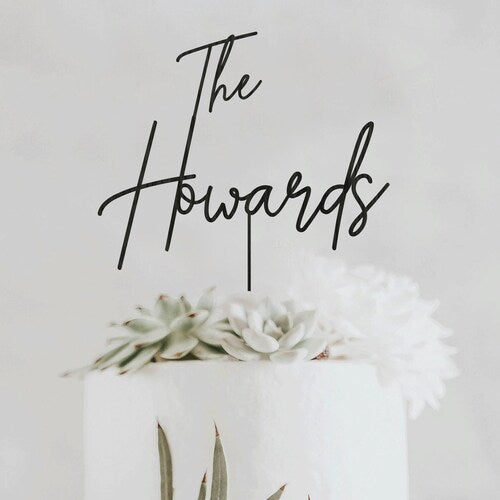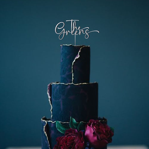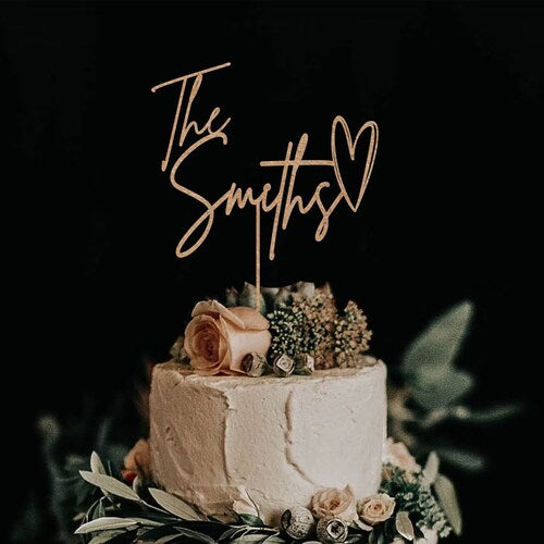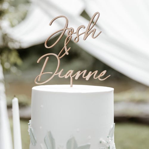 Custom Script Wedding Cake Topper – Personalized Design in Gold or Silver