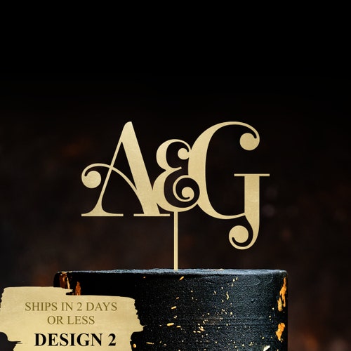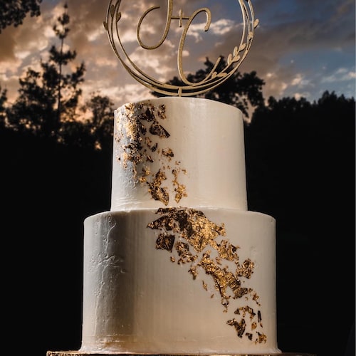 Custom Initial Wedding Cake Topper – Gold or Rustic Design