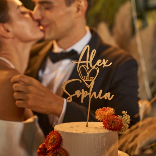 Personalized Wedding Cake Topper with Date – Custom Script Design