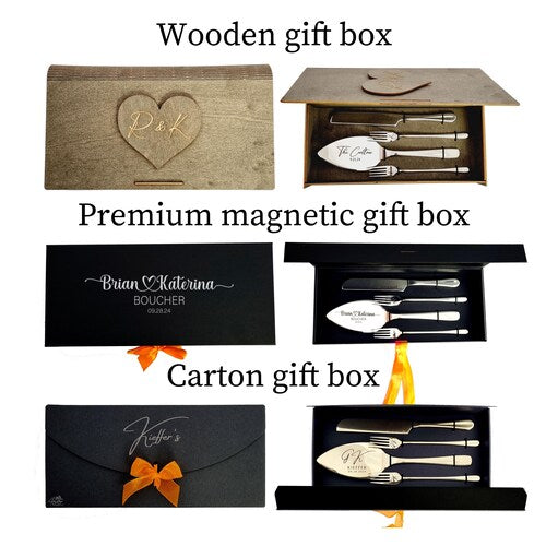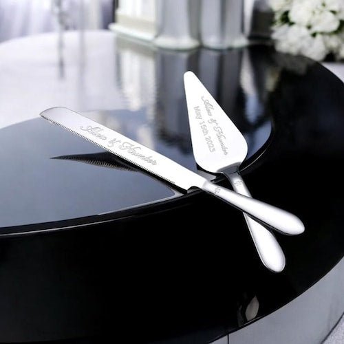Engraved Wedding Cake Cutting Set – Champagne Knife, Server, & Forks