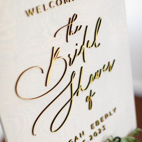3D Wooden Shower Welcome Sign – Elegant Gold Design