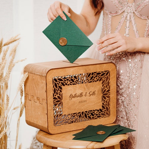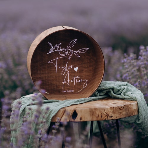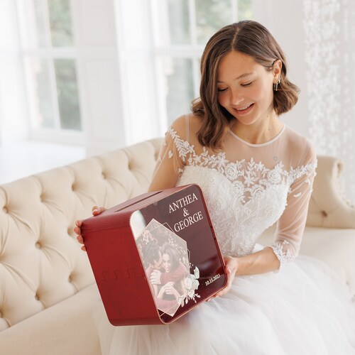 Personalized Wooden Wedding Card Box with Acrylic Glass Print