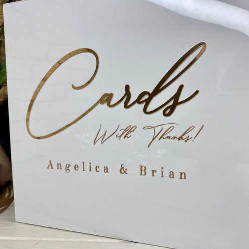 White Acrylic Wedding Card Box with Lock and Custom Raised Text