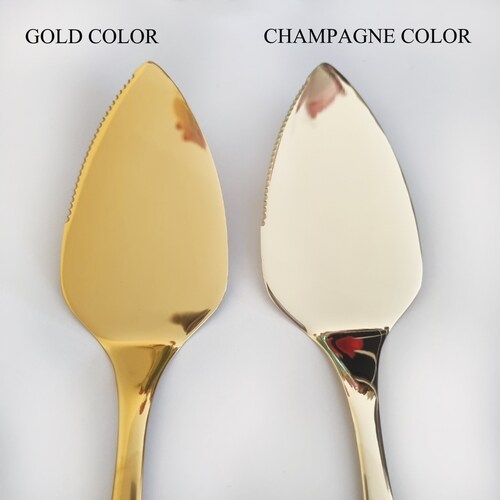 Make your special day unforgettable with this Engraved Champagne Wedding Cake Cutting Set, a stunning addition to your wedding celebration. This elegant set includes a cake knife, server, and two forks, each crafted from polished stainless steel for a timeless look. Personalize the set with names, dates, or a special message to create a cherished keepsake that symbolizes the sweet beginning of your journey together. Available in a range of sophisticated colors, this set beautifully complements any wedding theme.