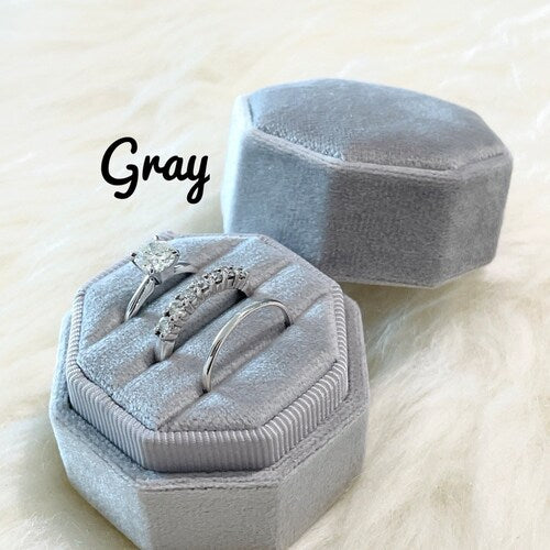 Triple Octagon Velvet Ring Box | Personalized Monogrammed 3-Slot Engagement & Wedding Ring Holder